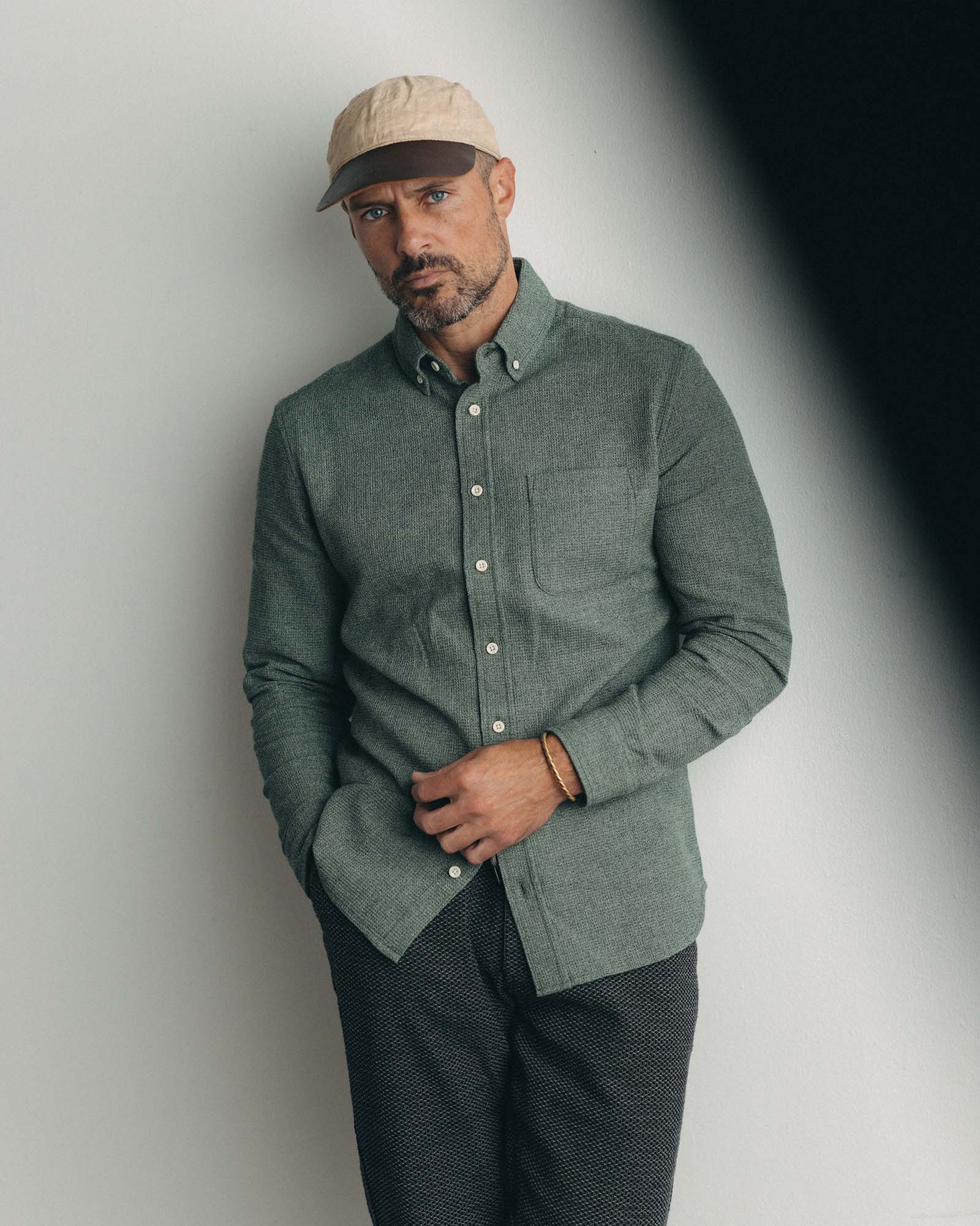 Faherty's Stretch Terry starts with a French terry knit back that feels like your favorite hoodie and finishes with a twill face that looks like denim. Faherty stepped it up with yarn-dyed shades like Egret and Onyx Black, meaning the yarns are dyed first for deeper color and better consistency. That process gives you stronger stretch, sharper recovery and colors that stay true.