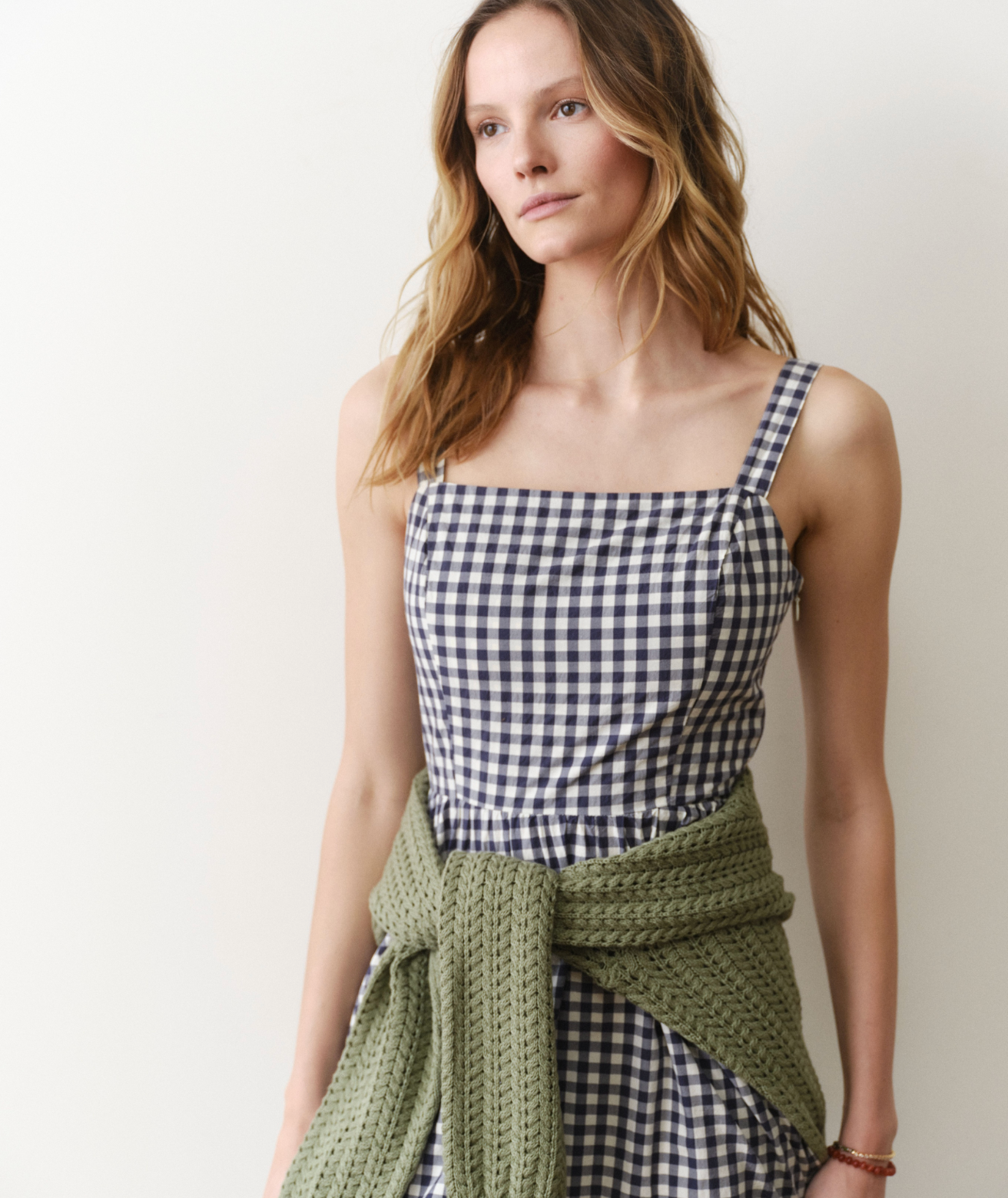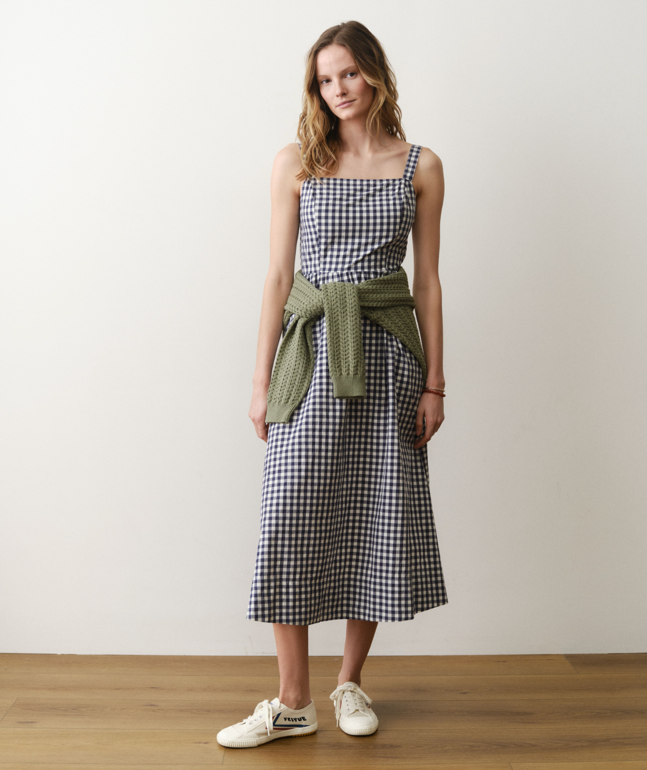 Demi Poplin Midi Dress - Navy Gingham